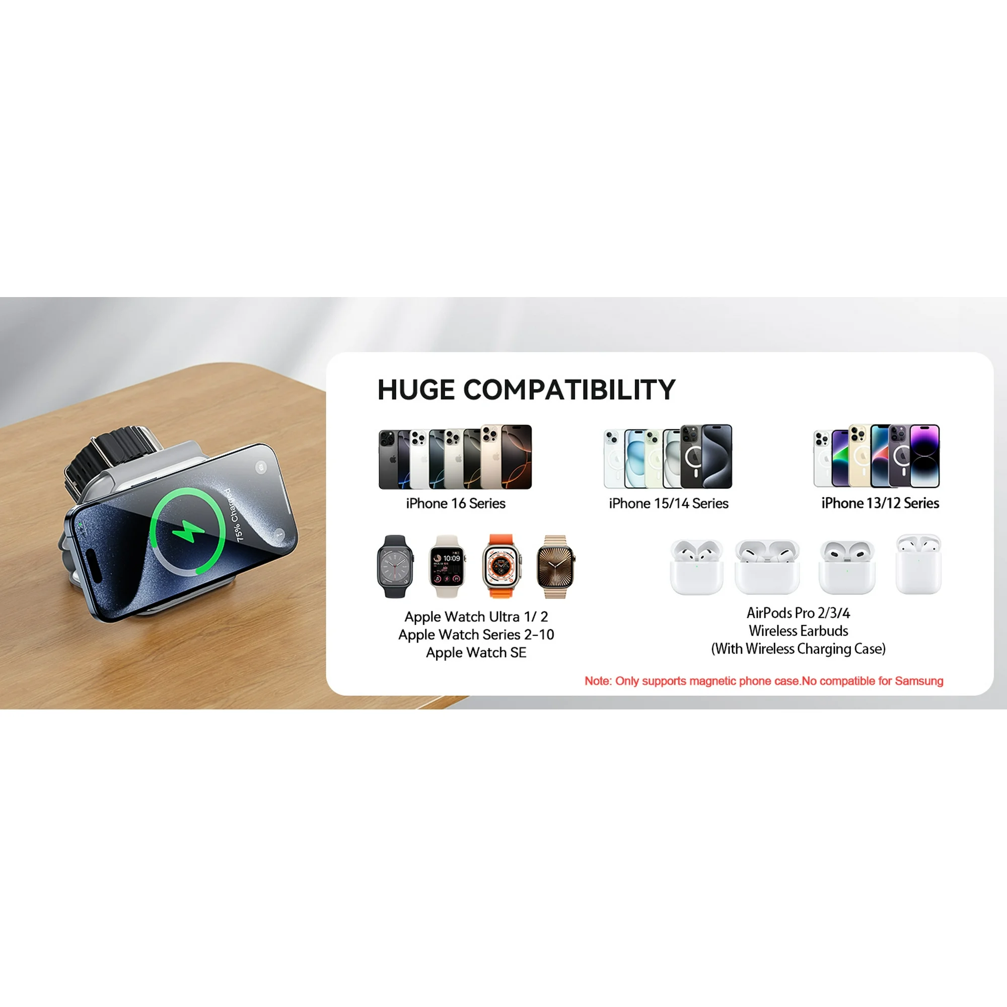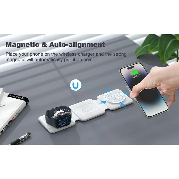 Delivers quick, efficient charging—fully powers devices in about 2–3 hours. Designed for iPhone 16/15/14/13 series, Apple Watch, and AirPods.