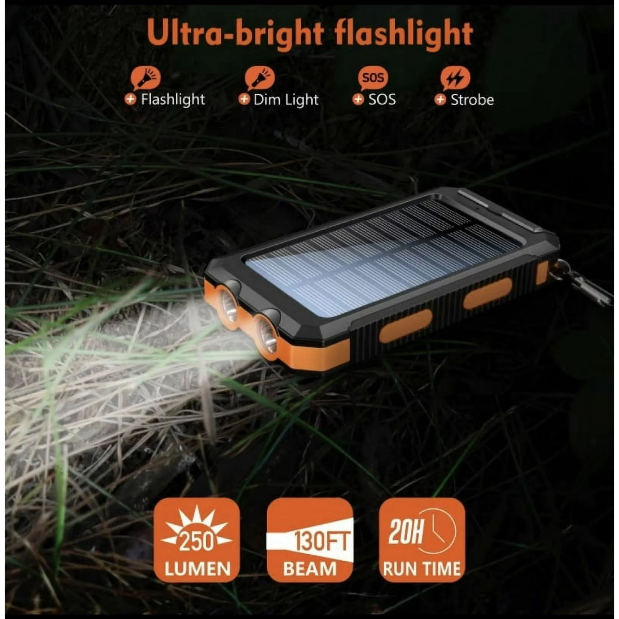 8000mAh Solar Charger Power Bank – Portable Waterproof Solar Battery Pack with Dual USB Output & LED Flashlight for Camping