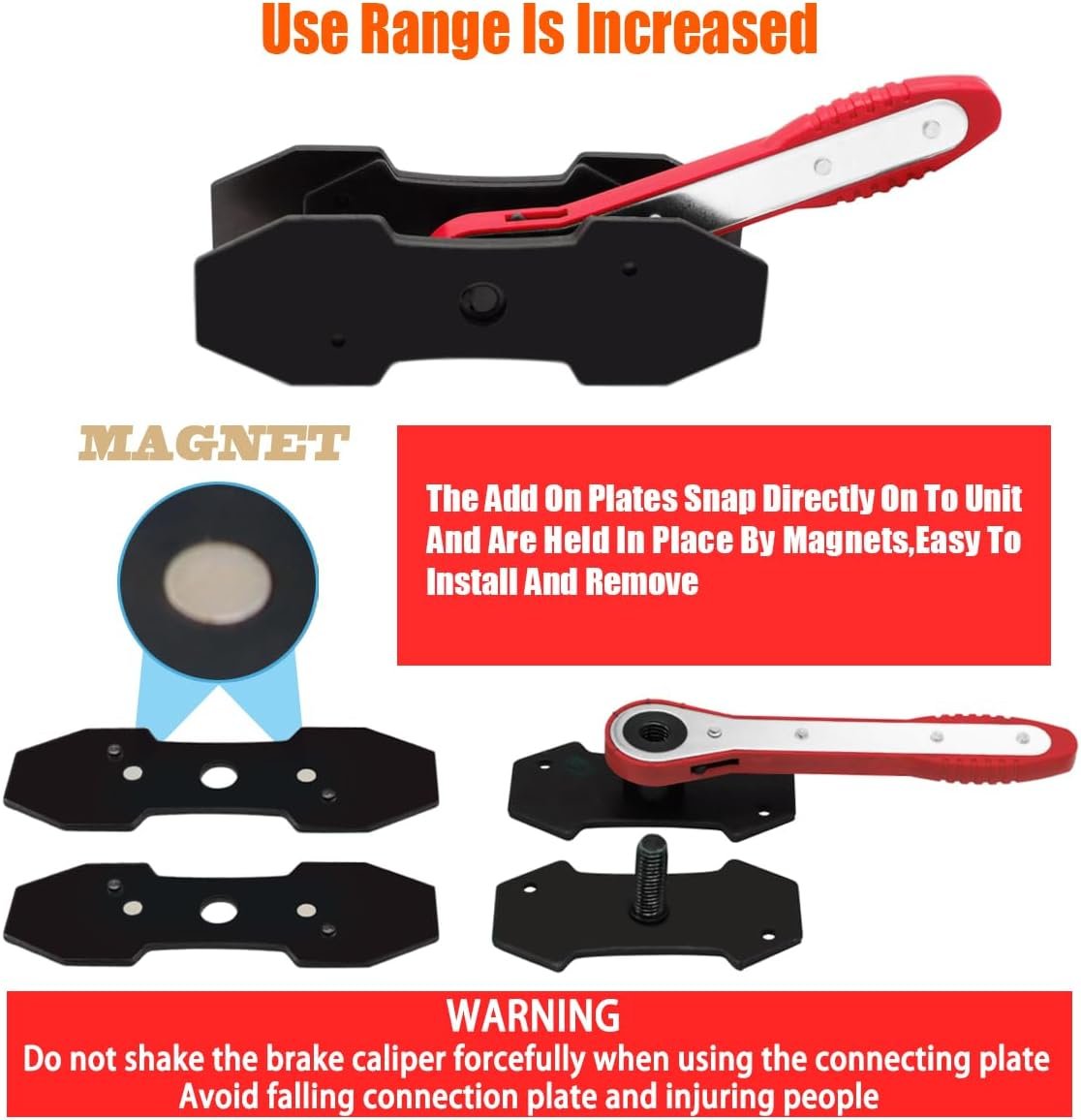 Brake Caliper Compression Tool – 360° Swing Ratchet Piston Compressor with Steel Plates & Hooks for Brake Pad Service