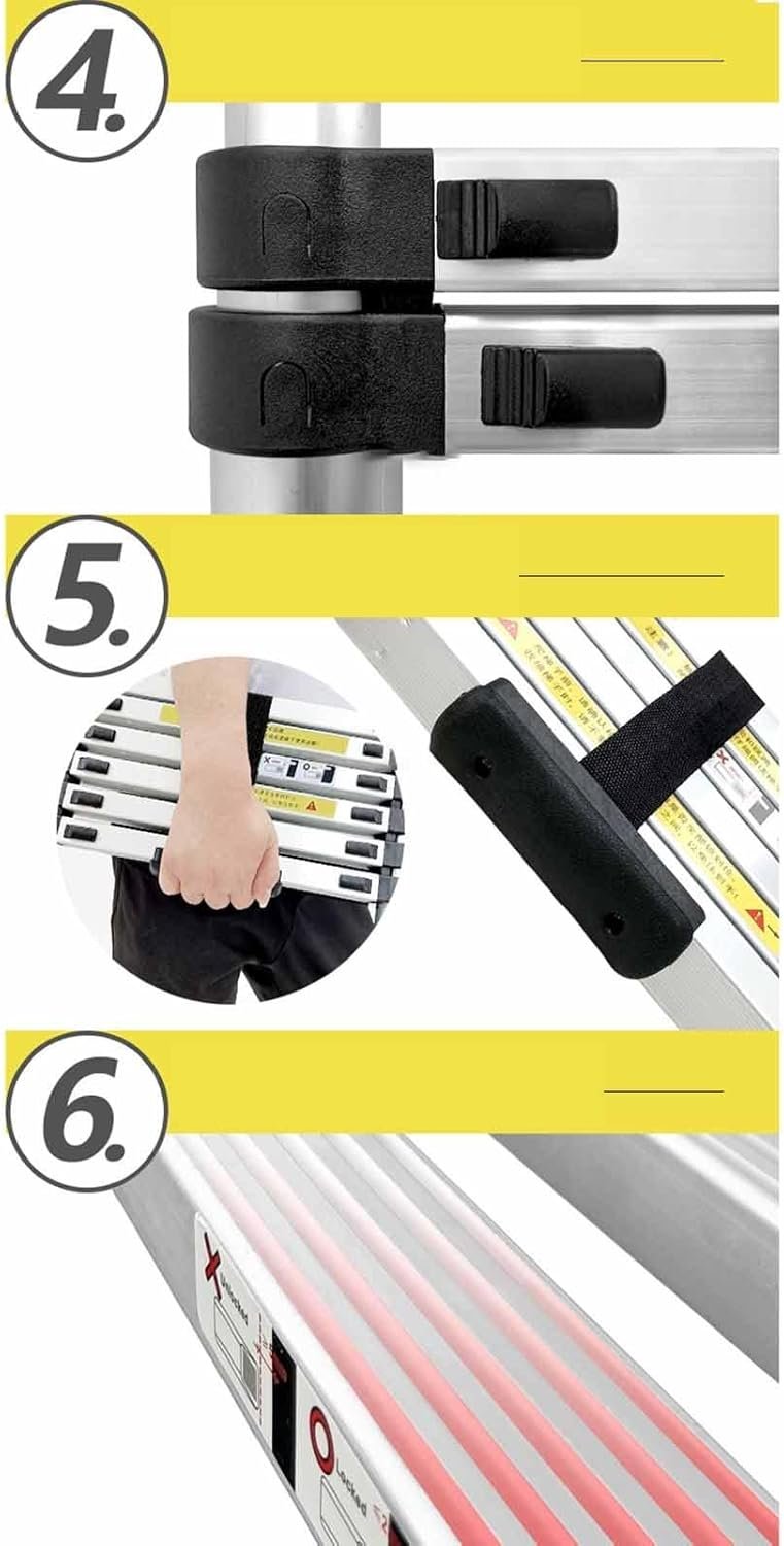Save space Portable – The extension ladder can be stored under the sofa or bed, behind the door, in the storage room, or in the trunk of the car, Lightweight and easily portable.
