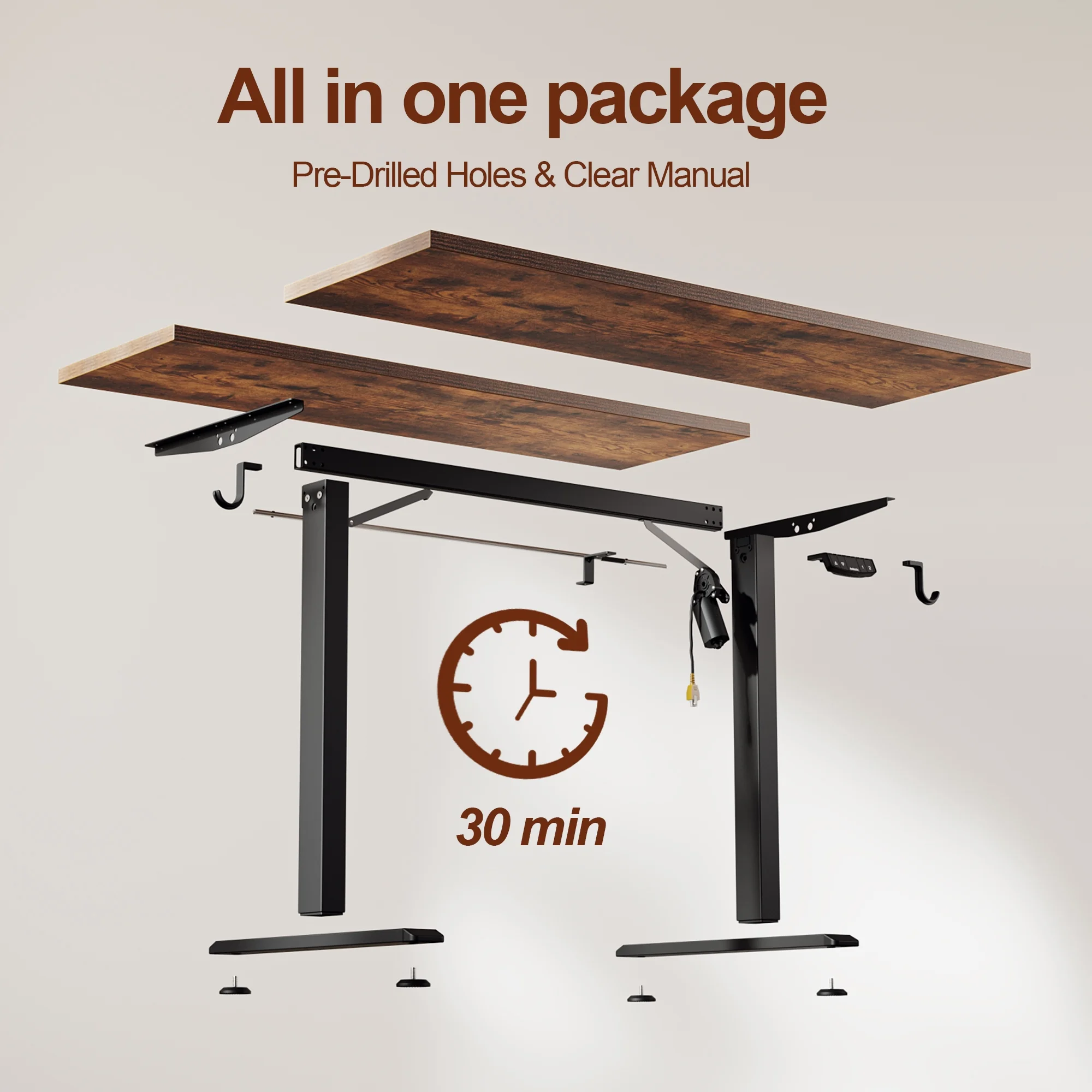 Spacious Desktop: The wide 47.24″ x 23.62″ tabletop provides ample space to store multiple monitors and accessories directly on the standing desk. Included cable management clips and storage hooks allow you to keep your electric standing desk organized and clutter-free.