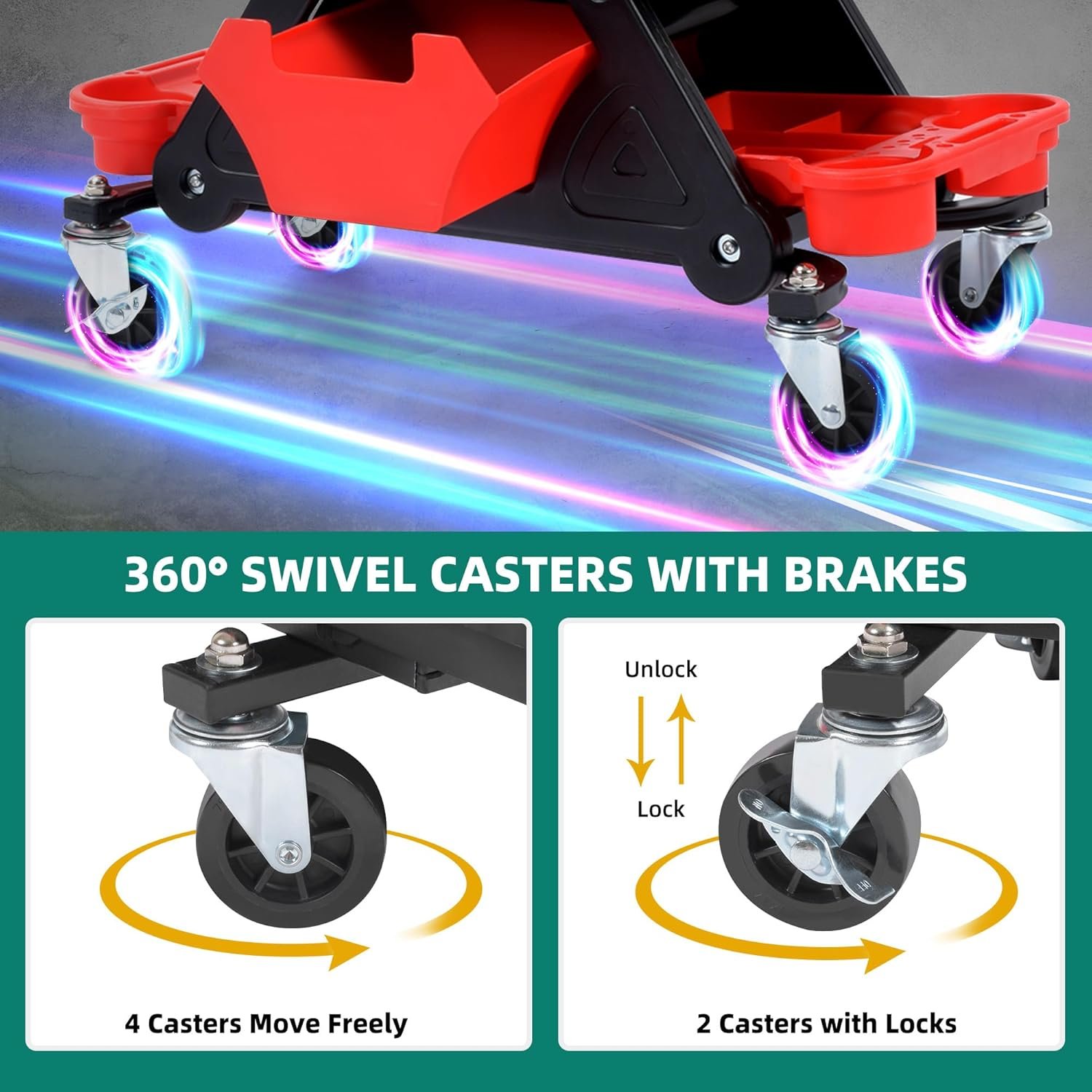 Mechanic Stool with Wheels – 330 LBS Heavy-Duty Rolling Mechanics Seat for Automotive & Auto Repair