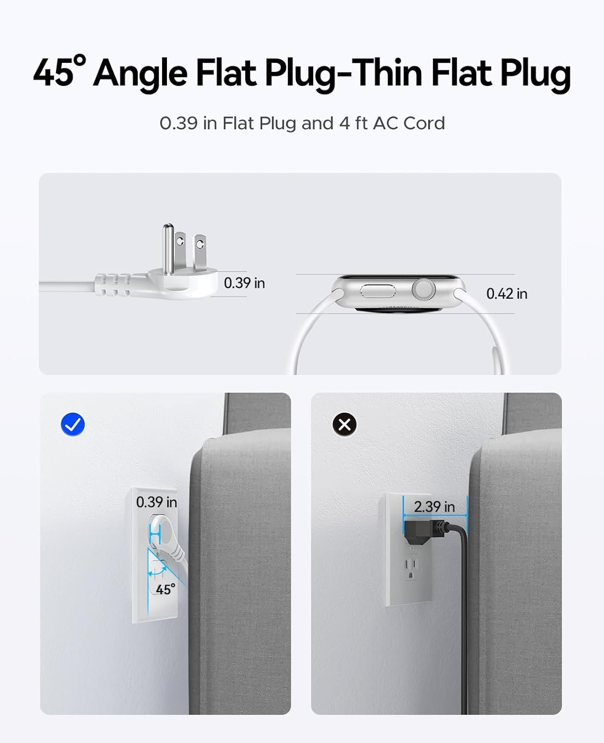 I use this under my desk and the flat plug makes a huge difference. No more bulky cords pushing my desk away from the wall.