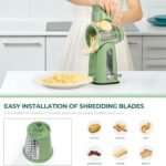 Crafted with 18/10 stainless steel blades and food-grade, BPA-free materials, this hand crank cheese grater is safe, durable, and built for everyday use. The fresh green color adds a natural, stylish touch to your kitchen while supporting healthier cooking.