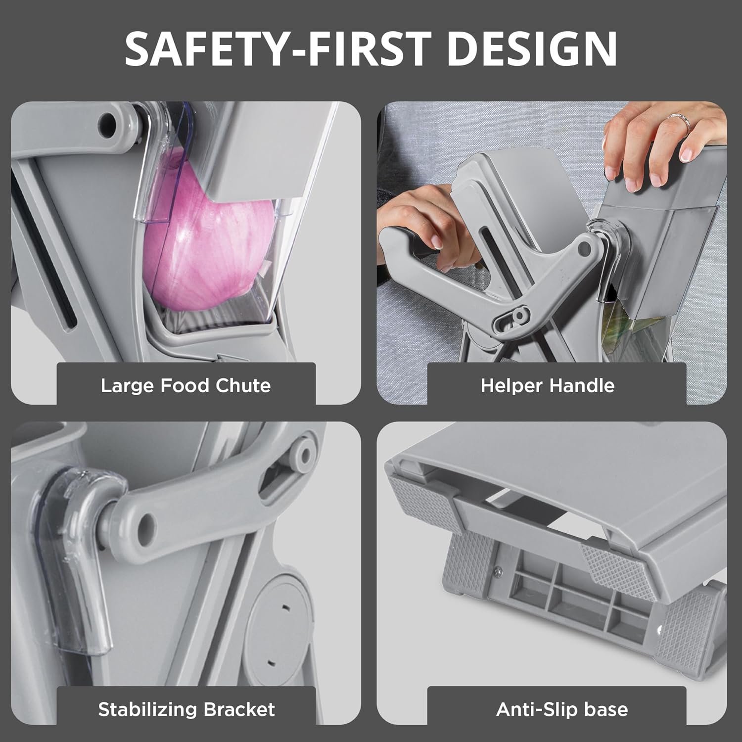 DURABLE AND EASY TO CLEAN Crafted for durability, this safe mandoline slicer for kitchen simplifies slicing while being easy to clean. Whether you call it a mandalin or mandellin, it’s the ultimate tool for effortless cooking!
