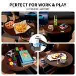 【Tool-Free Setup & Compact Storage】Install or remove this car tray table easily in 3 steps without tools. Its ultra-slim 1.6″ profile saves space and stores conveniently in the provided pouch, suitable for road trips, camping, or home use.