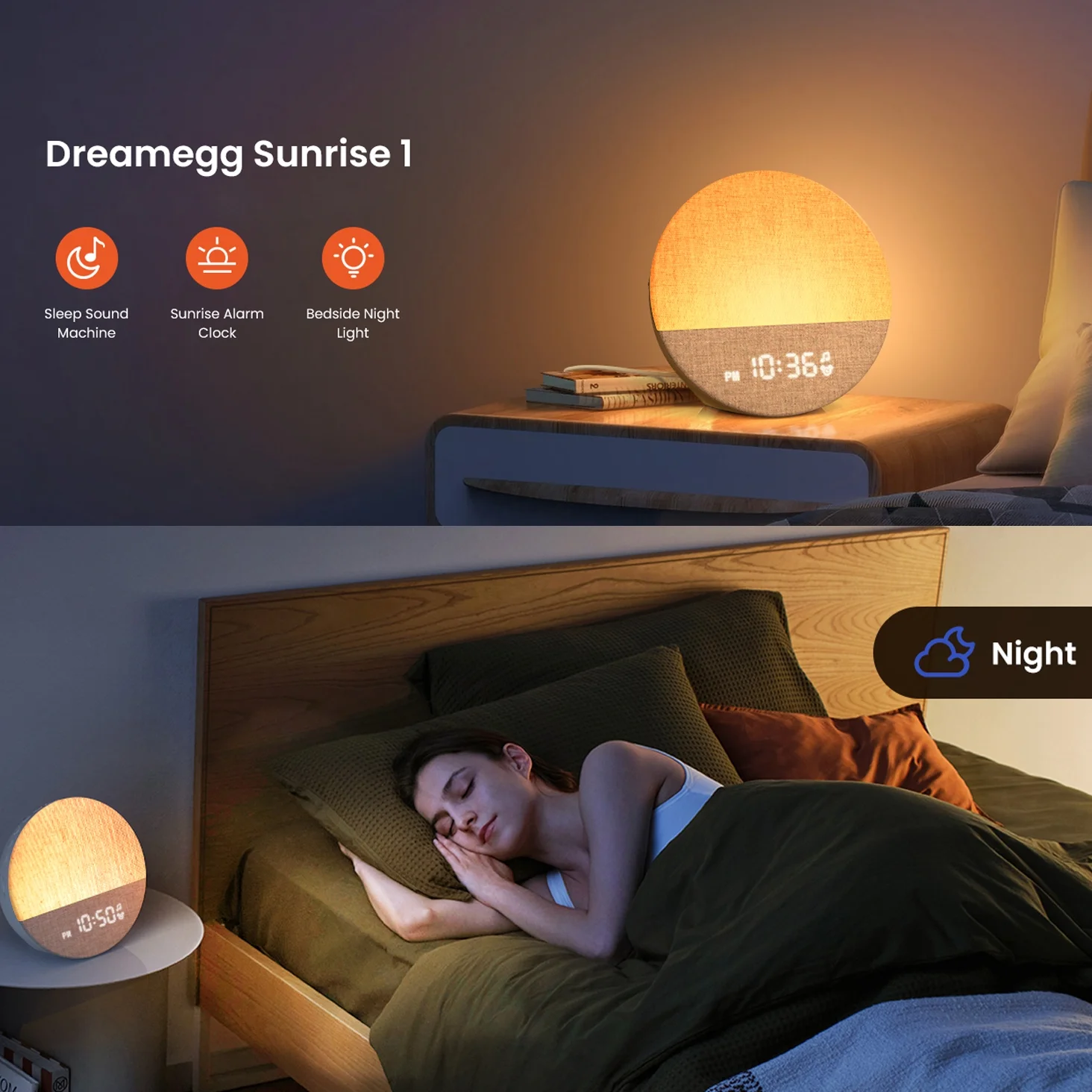 Dreamegg Sunrise 1 simulates a natural sunrise combined with gentle sounds, helping you wake up gradually and refreshed—no harsh alarms, no groggy mornings.