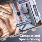 Compact handheld design measuring 10.23 × 3.9 in and weighing only 1.6 lb (about the weight of a 750ml water bottle). Features a rotating steam head for easy packing and includes a premium travel pouch. Ideal for backpacks and carry-on luggage.