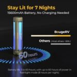 Built-in 15,600mAh rechargeable battery provides up to 60 hours of runtime (low brightness)—enough for up to 7 nights of outdoor lighting.
